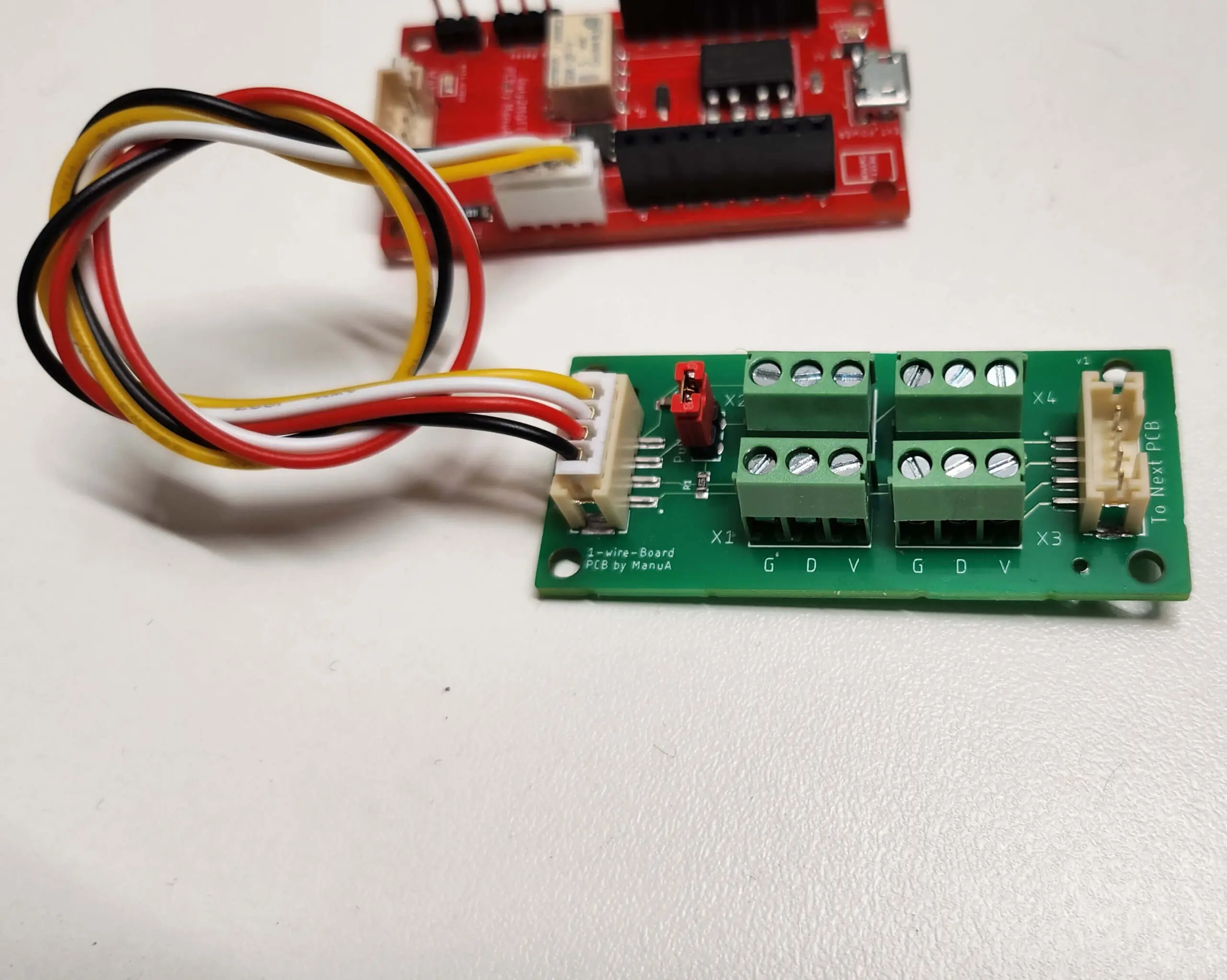 Mit dieser Platine können mehrere Temperatur-Sensoren auf einfachste Art an die *2MQTT-Platinen angeschlossen werden. Werden mehr als 4 Sensoren benötigt, kann eine zweite, dritte oder vierte Platine angereiht werden.